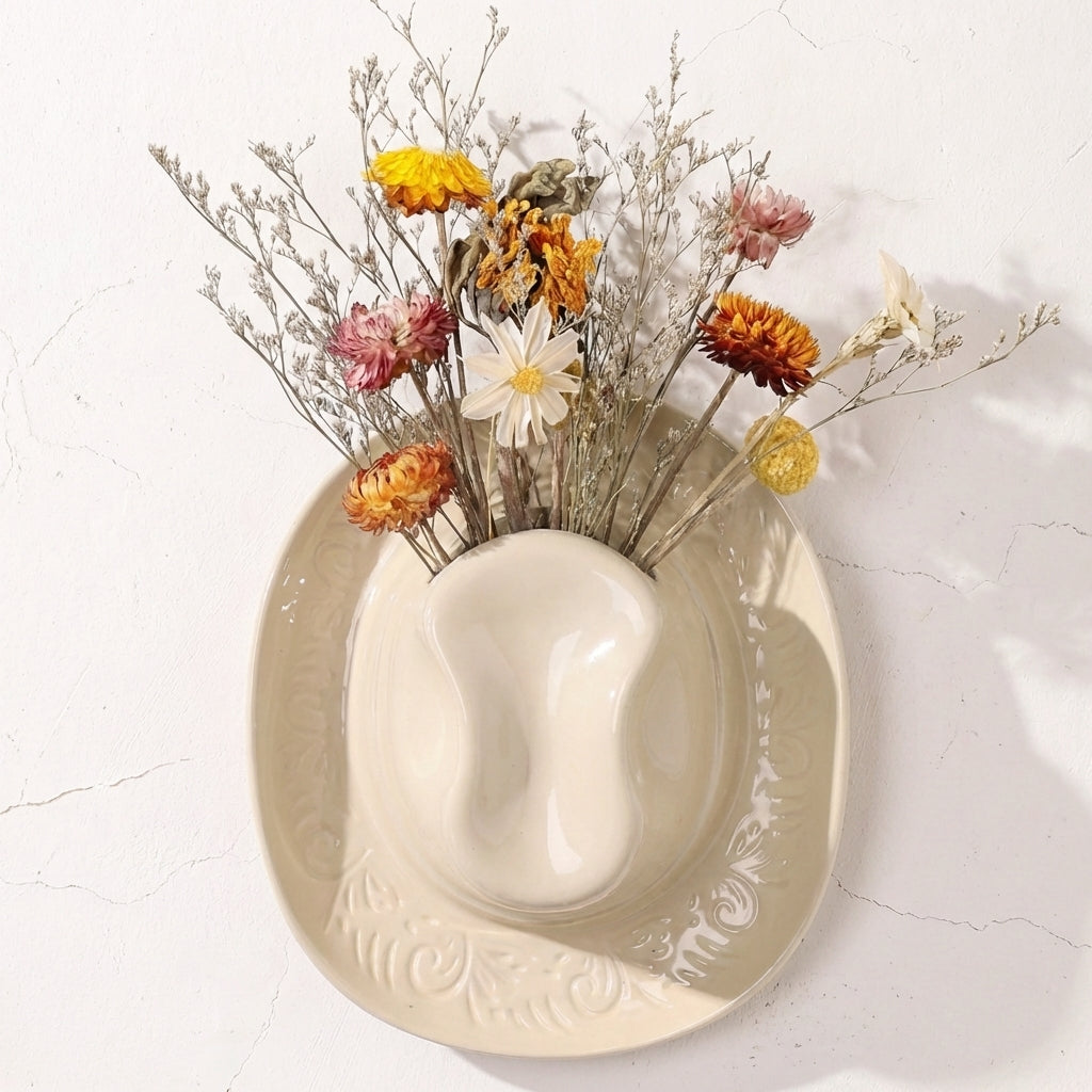 The cowboy hat vase fits beautifully with western, farmhouse, rustic, or bohemian décor. Its unique design makes it a standout wall decoration in living rooms, kitchens, hallways, or entryways.